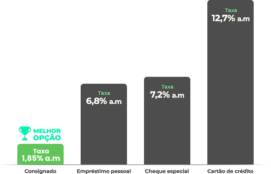 O crédito consignado é rápido e descomplicado, ou seja, a aprovação sai muito mais rápido. Além disso tem parcelas pré-fixadas, maiores prazos e juros mais baixos em comparação aos demais créditos do mercado, compare e veja.